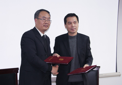 簽字儀式上,王大威總經(jīng)理、梁國(guó)浚主任分別代表各方在協(xié)議上簽字并交換,宋桂言副院長(zhǎng)向威龍公司頒發(fā)了“校外實(shí)習(xí)基地”的授牌,趙君堂副院長(zhǎng)向王總經(jīng)理頒發(fā)了濰坊職業(yè)學(xué)院客座教授的聘書。濰坊電視臺(tái)等相關(guān)媒體與威龍公司部分員工見證了整個(gè)簽約儀式。